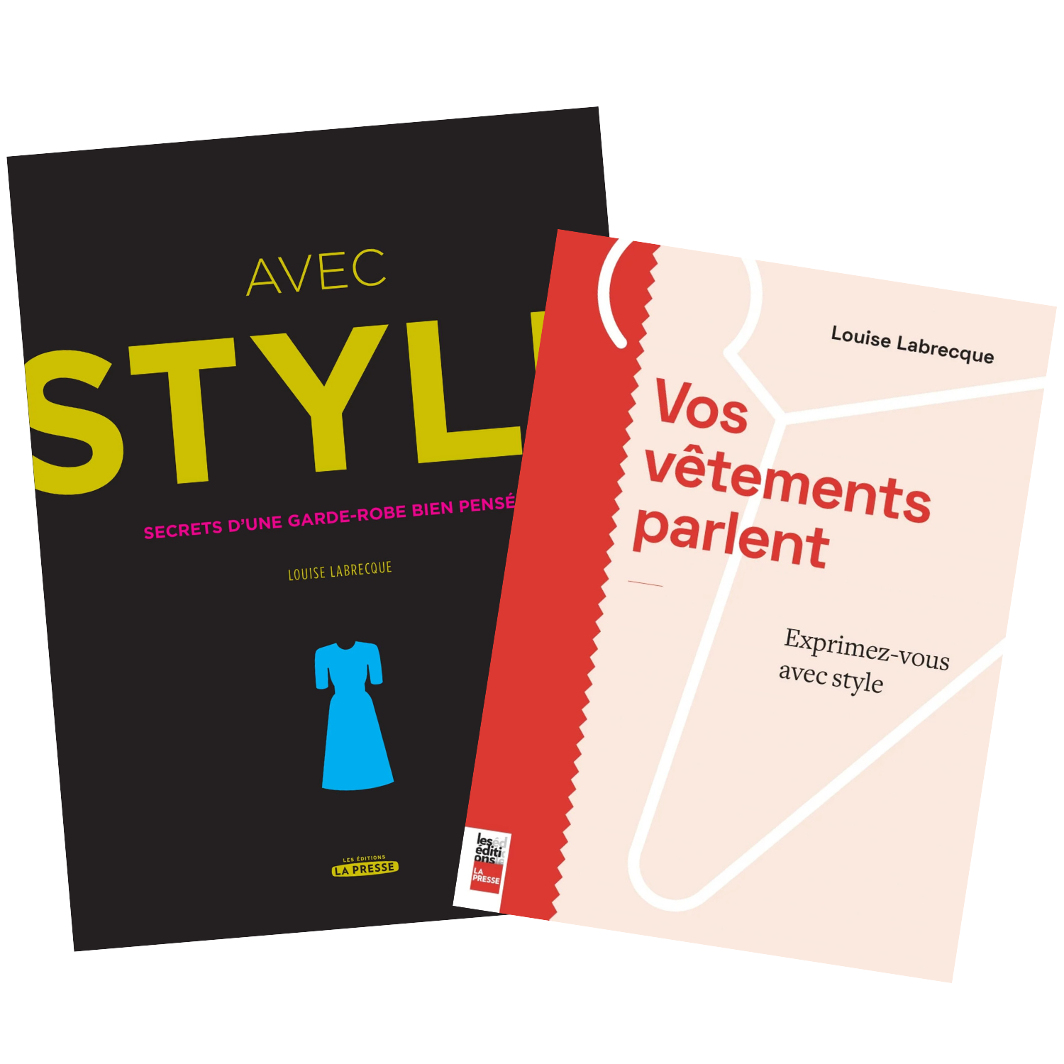 Notre dernier duo de livres est composé de Avec Style et Vos vêtements parlent de la styliste Louise Labrecque. Dans son premier livre, Avec Style, on y découvre des conseils de pro pour créer et composer une garde-robe. De plus, vous y retrouverez les témoignages de 11 célébrités québécoises qui vous parleront de leur rapport à la mode. Si vous voulez trouver la tenue parfaite pour vous, ce livre est ce qu’il vous faut!