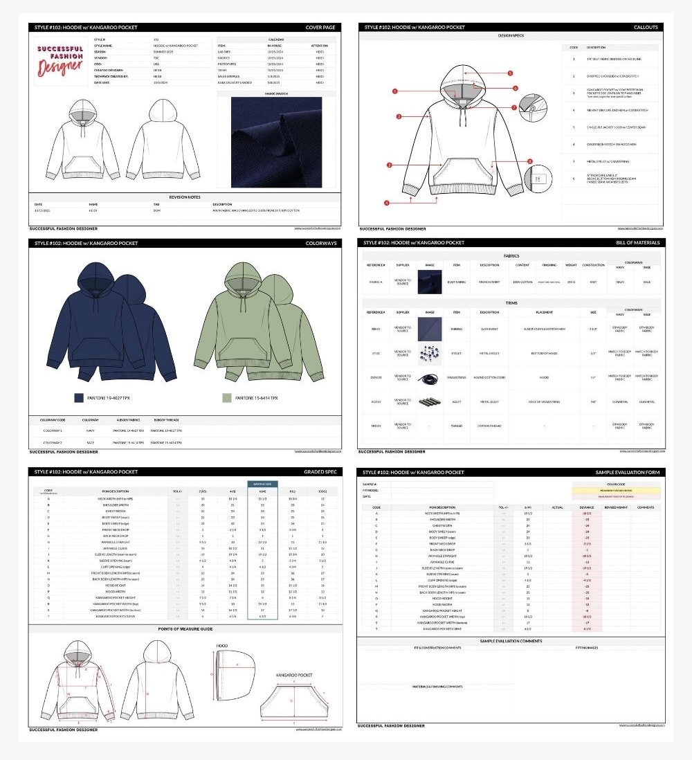 Maintenant vient la conception technique du vêtement. C’est à ce moment que les vêtements passent du concept à la réalisation concrète. À cette étape, on va créer les documents techniques de chacune des pièces qui composent la collection. Dans un document nommé TechPack, on inscrit tout ce que l’on souhaite retrouver sur le vêtement : les types de coutures utilisés, les mesures spécifiques de certains détails, le choix du tissu, les boutons; on y indique vraiment tous les détails pour la conception. C’est comme le plan d’architecture du vêtement pour sa fabrication. On y ajoute aussi les patrons et toutes les informations concernant les mesures du vêtement.