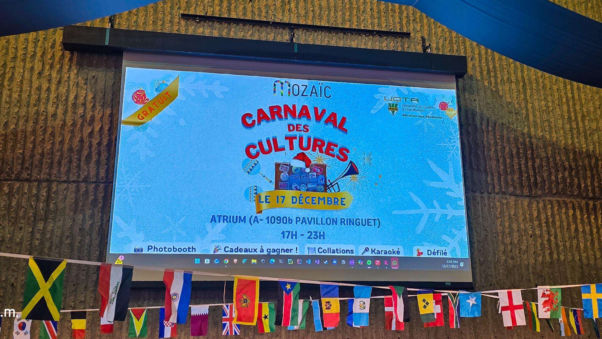 Le mercredi soir du 17 décembre dernier, l’Atrium de l’UQTR s’est transformé en un véritable carrefour des cultures, le temps d’une soirée festive. De 17h à 22h30, le Carnaval des cultures, organisé par Mozaïc, a rassemblé plus d’une centaine d’étudiants venus des quatre coins du monde.