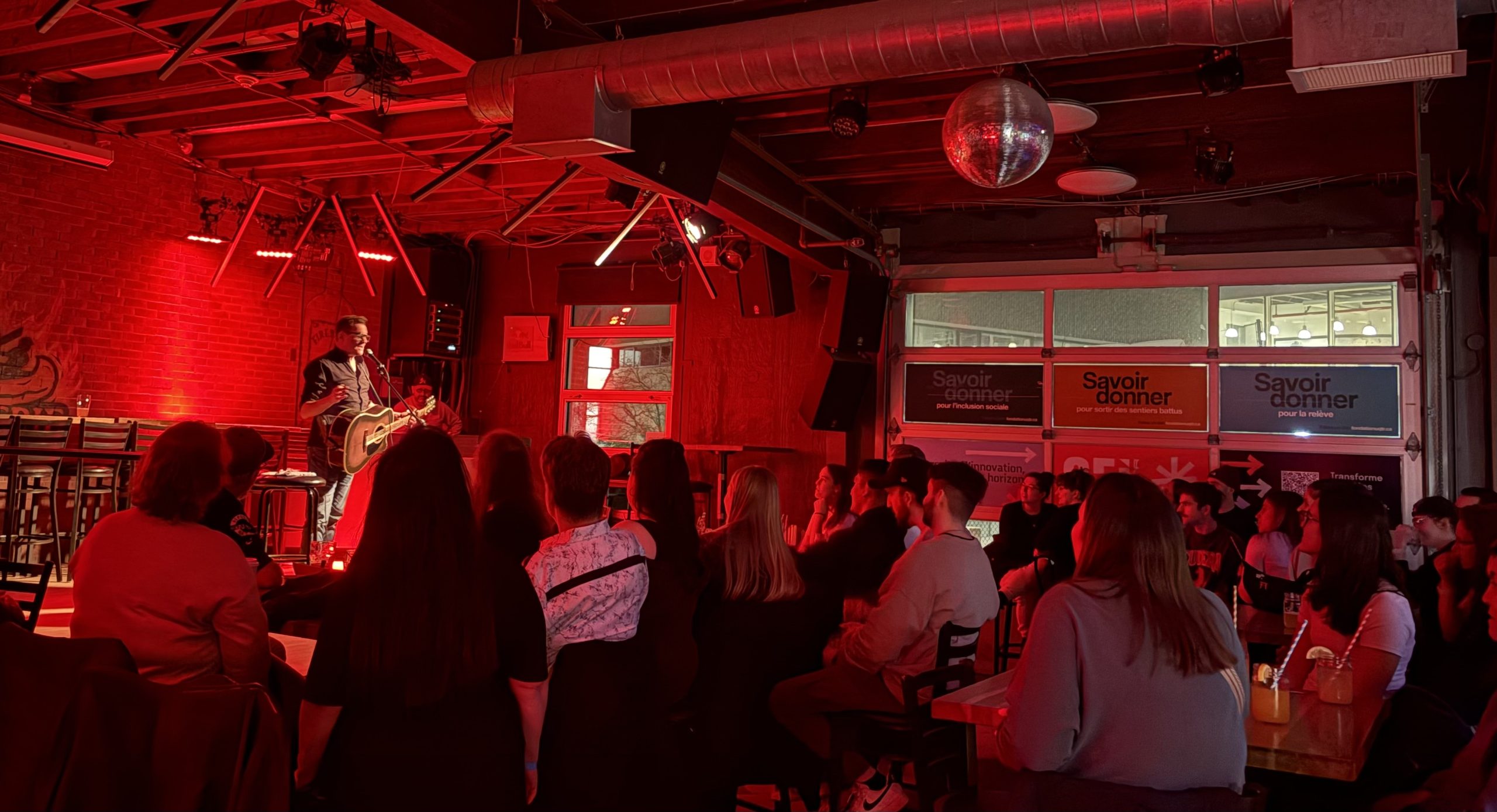Dès 19h, les étudiantes de l’association étaient sur place pour accueillir le public et tenir le vestiaire. Le bar était évidemment ouvert et chacun a pu se procurer une consommation ou mangé avant que le spectacle commence. Le spectacle a débuté peu après 20h, le tout dans une ambiance conviviale et décontractée, fidèle aux événements de la Chasse-Galerie. La présidente de l’ABASS, Azalée Tremblay-Delorme, a pris la parole pour remercier les étudiants et membres du public de s’être déplacés et introduire l’artiste. Julien Tremblay a débuté en mentionnant qu’il était très content de se produire dans un bar, puisque c’était maintenant plus rare qu’il performe dans ce genre de contexte.