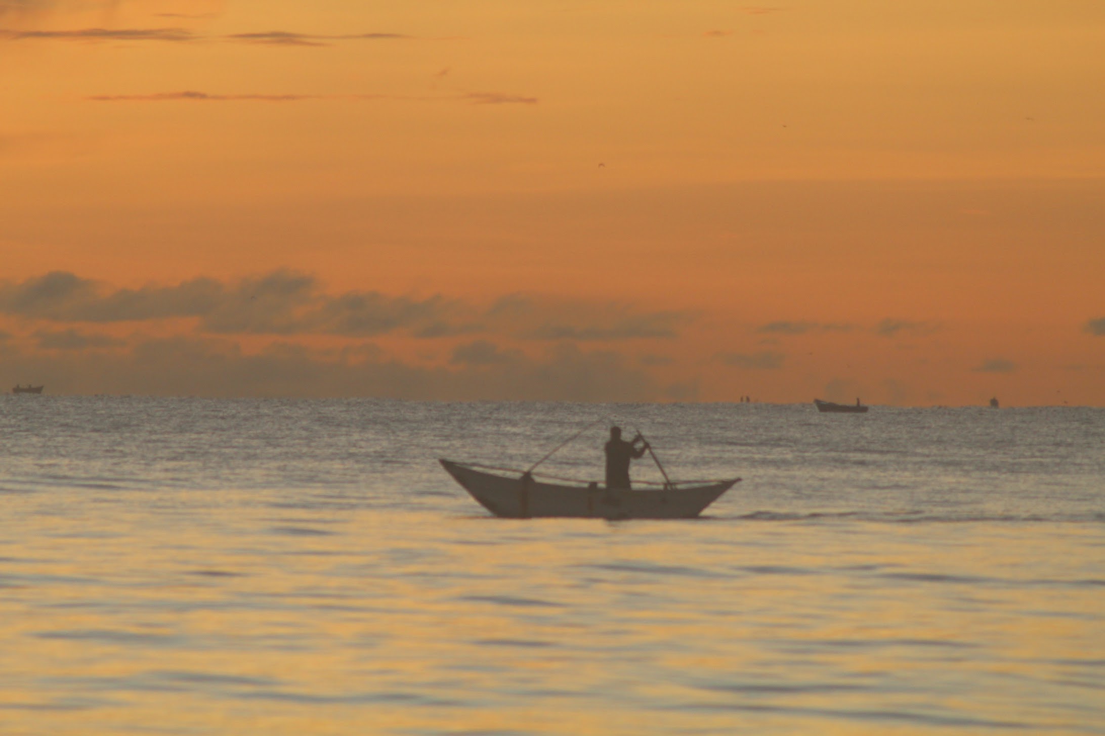 Un pêcheur mène sa barque, au lever du soleil, à Trincomallee (Sri Lanka), lieu central dans Kabasa. Crédits : Journaliste.
