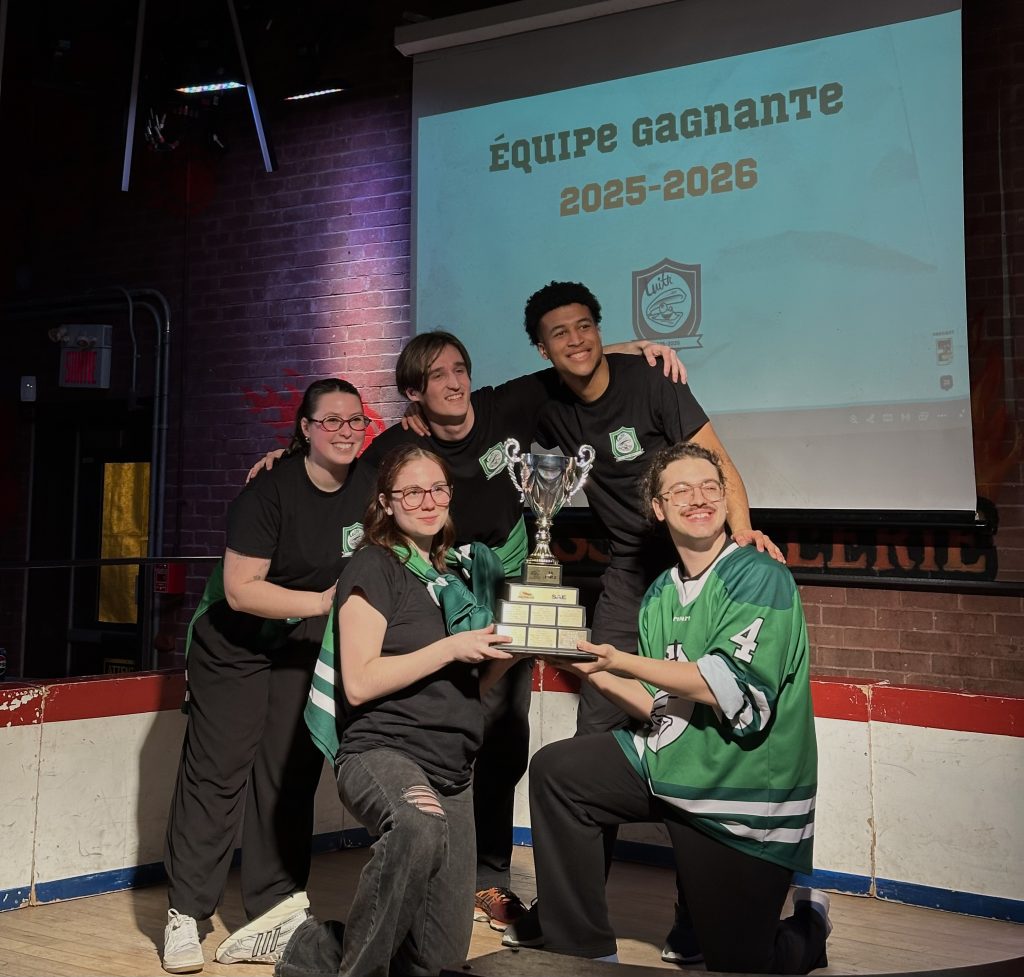 Avant de dévoiler les résultats de la finale, le traditionnel Gala Mollusque a permis de souligner les performances individuelles de la saison. Plusieurs prix ont été remis aux joueurs et joueuses qui se sont démarqués. Par exemple, le titre de Joueur de l’année est allé à Élianne Saint-Yves, capitaine des Oranges. Laurent Hamelin, capitaine des Bleus, a reçu le prix du Joueur constructeur, récompensant sa capacité à bâtir des histoires solides en improvisation. Le prix du Joueur le plus apprécié par ses pairs a été décerné à Albert Pomerleau. De son côté, Zachary Beaulieu, capitaine des Verts, s’est vu remettre le prix Punch pour son humour percutant. Bien d’autres prix ont été remis pour récompenser les efforts des étudiants et étudiantes. Puis, le moment tant attendu est arrivé : les Verts ont été couronnés grands gagnants de la saison 2025-2026.