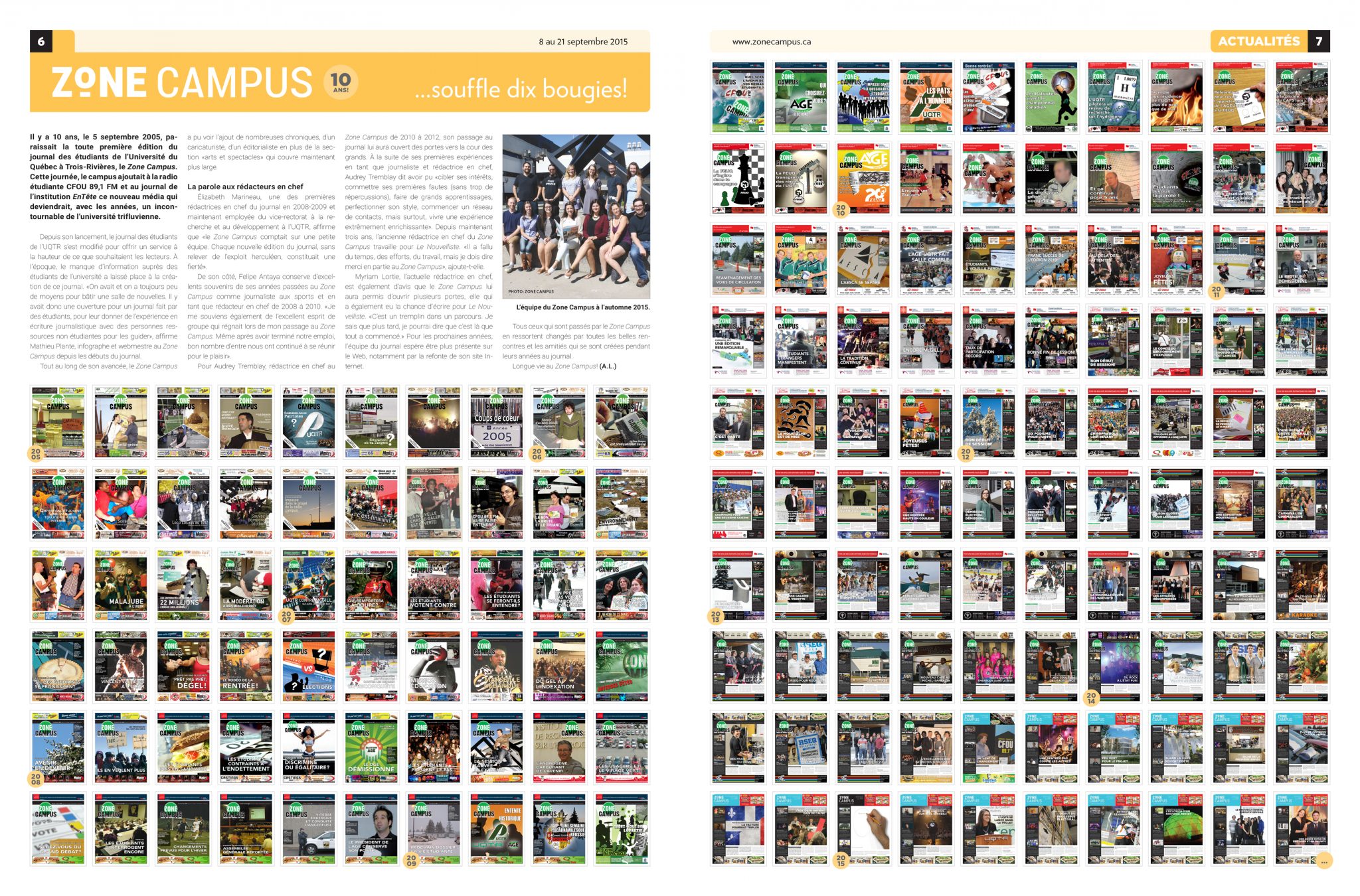 Il y a 10 ans, le 5 septembre 2005, paraissait la toute première édition du journal des étudiants de l’Université du Québec à Trois-Rivières, le Zone Campus. Cette journée, le campus ajoutait à la radio étudiante CFOU 89,1 et au journal de l’institution EnTête ce nouveau média qui deviendrait, avec les années, un incontournable de l’université trifluvienne.